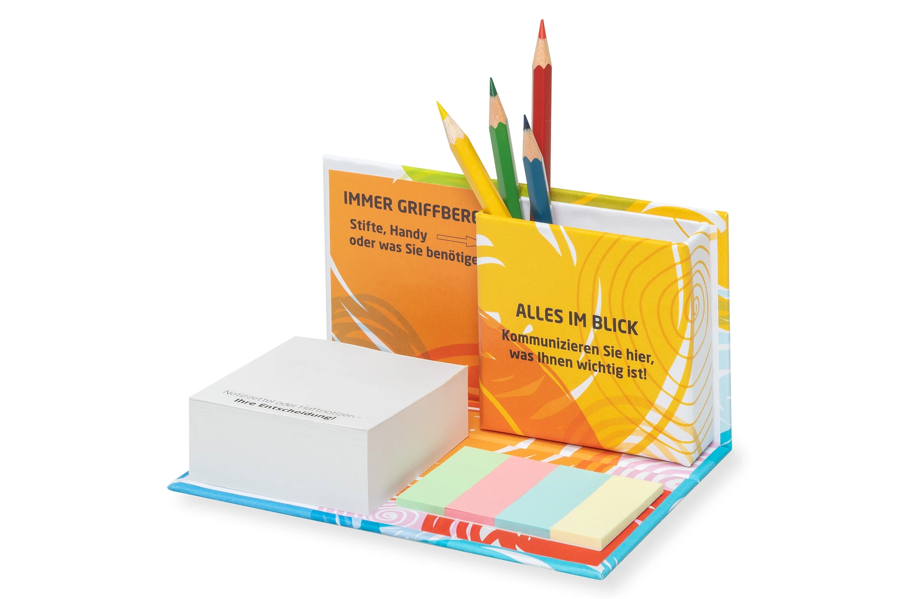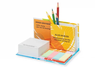 links auf Boden mit Notizblock am Rücken geleimt – 68 x 75 mm